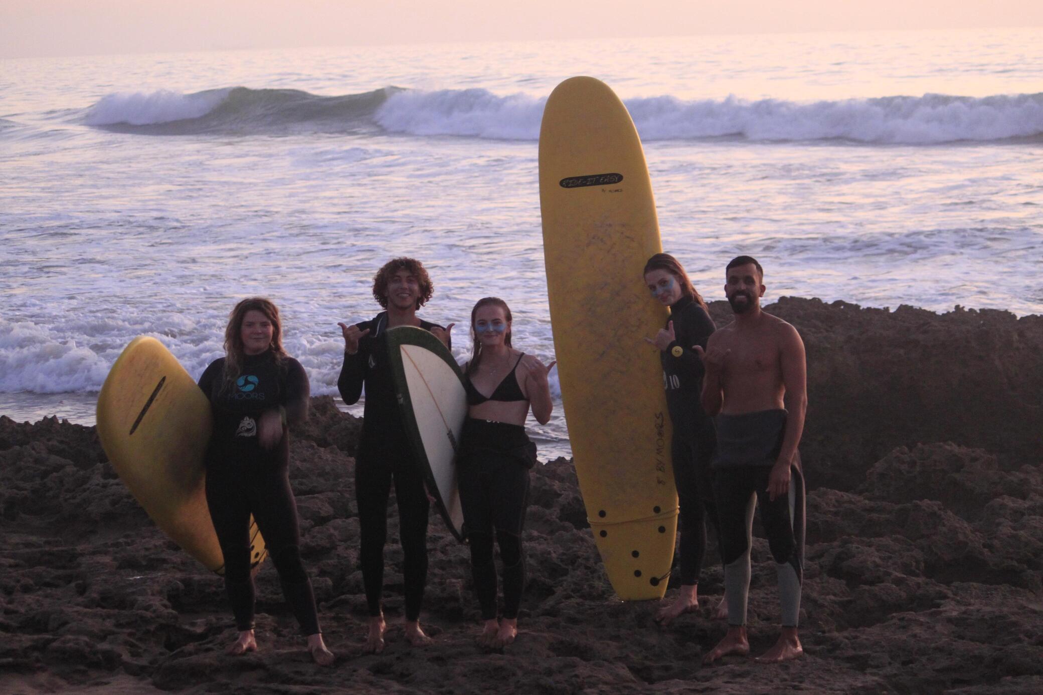 At our surf camp, you’ll enjoy fun surf lessons, cozy accommodation, delicious meals, and the warm Moroccan hospitality we are known for. Come and experience the joy of surfing, meet new friends, and relax in a beautiful setting.
